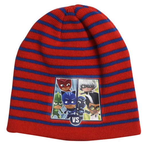 Σκούφος για αγόρι από τη συλλογή μας με παιδικά ρούχα για αγόρια. Σε δυο διαφορετικά σχέδια ριγέ μπλε με κόκκινες ρίγες και κόκκινο με μπλε ρίγες. Με υπέροχο σχέδιο PJ Masks. Απαλό και ζεστό ιδανικό για τις κρύες μέρες του χειμώνα.